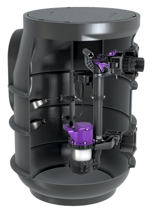 Przepompownia do ścieków bez fekaliów jest przystosowana do zabudowy w ziemi i wyposażona w zawór zwrotny do przewodu tłocznego. Zbiornik z PE jest odporny na ścieki bytowe i posiada pokrywę z tworzywa sztucznego, po której można chodzić. Pompa z wirnikiem Vortex z wolnym przelotem zapewnia najwyższe bezpieczeństwo pracy. Komponenty są wstępnie zmontowane do montażu końcowego w miejscu instalacji. Z płaszczyznami na podłączenie dopływu.