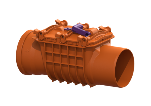 Zawór przeciwzalewowy do ścieków bez fekaliów jest wyposażony w dwie klapy mechaniczne, które zamykają się podczas przepływu zwrotnego. Jedna klapa zwrotna służy jednocześnie jako ręczne zamknięcie awaryjne.