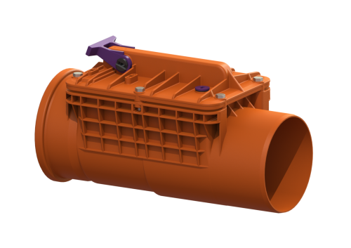 Zawór przeciwzalewowy do ścieków bez fekaliów jest wyposażony w dwie klapy mechaniczne, które zamykają się podczas przepływu zwrotnego. Jedna klapa zwrotna służy jednocześnie jako ręczne zamknięcie awaryjne.