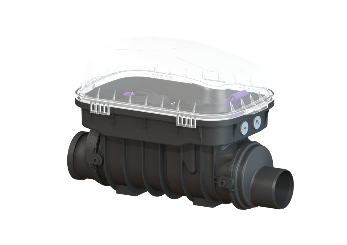 Zawór przeciwzalewowy klasy premium do ścieków bez fekaliów jest wyposażony w dwie klapy mechaniczne, które zamykają się samoczynnie podczas przepływu zwrotnego. Jedna klapa zwrotna służy jednocześnie jako ręczne zamknięcie awaryjne.